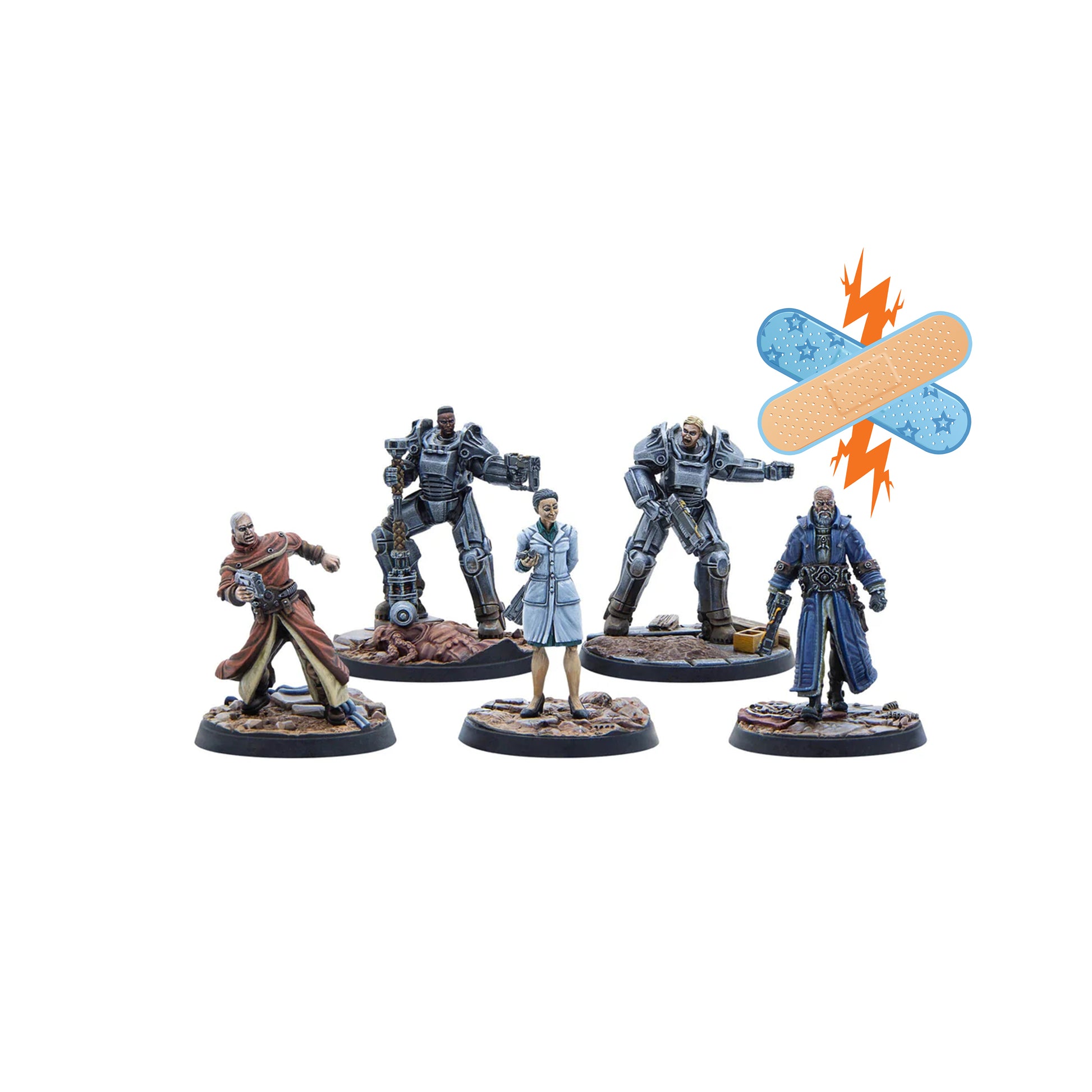 This Fallout: Wasteland Warfare set contains five 32mm scale high-quality multi-part resin miniatures with scenic bases. Requires assembly. Supplied unpainted.